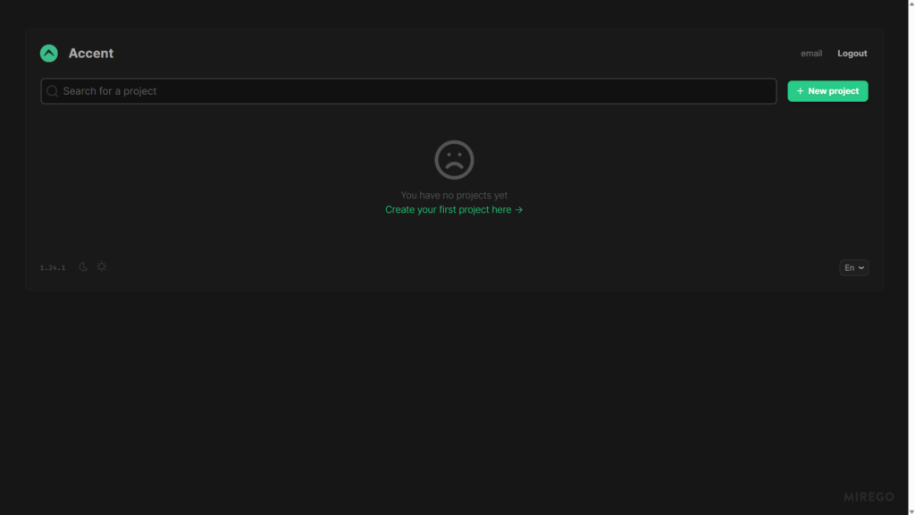 After logging in you will be greeted with the projects page, as you won’t have any, create one by pressing the ‘New project’ button on the top right: